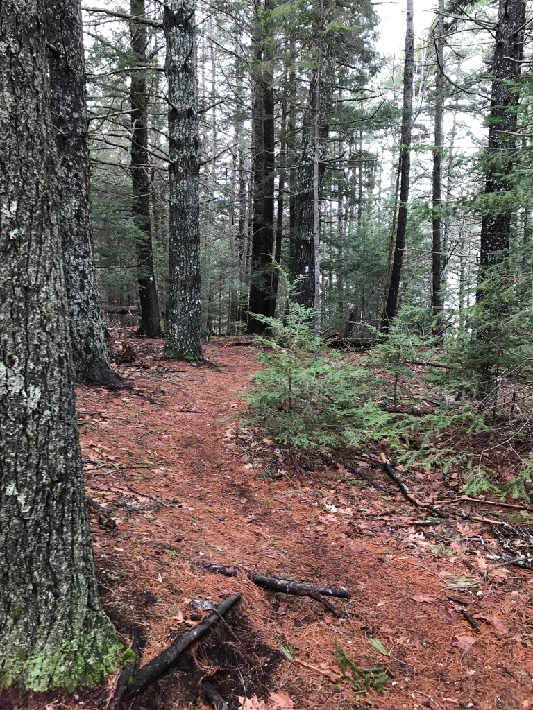 What is it about these Maine woods? Its mud and muck season. Brilliant green moss and blue-green lichens covering the trees, so bright they appear fluorescent. It’s the wonder of trees ripped from stumps that leave a firework of awe. It’s the curiosity of what is it that has been gnawing at the tree? Its not yet those little white and purple flowers that I remember from last spring. It is these little green shoots coming up through the ground cover of dark brown leaves.