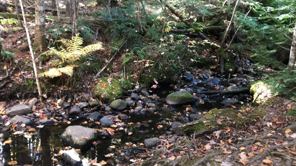 As I’m finishing setting up my tent, several NOBO’s (Northbounders) filter water at the stream, all headed to Katahdin before it closes on October 16. Some 136 miles to go in 11 days. In June on our 100 Mile Wilderness Trek we’d met some of the first hikers of the season to finish, the second woman finisher, the 12th man. Today, I’ve been meeting some of the last, heading to Katahdin before the snow including Mango and Popeye, two young solo hikers, who set up camp across the trail.