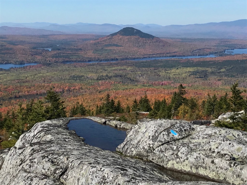 Its been an amazing day. Impossible to describe just how beautiful it was up there on the top of Moxie Bald Mountain. Looking over towards Pleasant Mountain, I see why I’d struggled on those 5 miles down yesterday over what I can see now were three peaks, down and up, down and up before getting down to the stream where I’d camped last night.