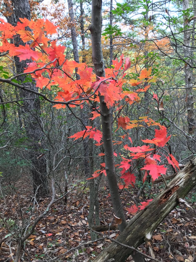 Now breathing our way downhill I find myself pushing ahead for the open vista like I have expected to see in Maine. But the hills here are different hills, the views here through leaves of gold, green and red. There is nothing to push towards. This is the view through a curtain of bright foliage.