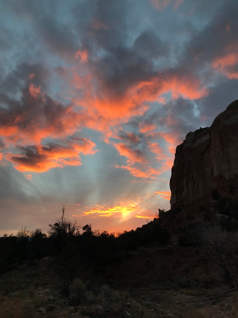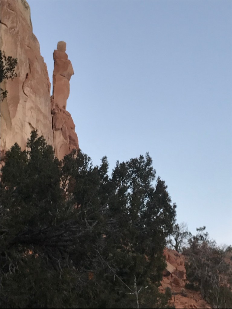 Each morning I set out to explore a new trail. As I climbed the mesas and buttes, I learned the joy of hiking without a clear destination. No peak to conquer, but a trail to discover. Along the way, paused to take pictures of craggy rock formations that became a broken communion table; a grey gnarled snag, a weeping Christ.