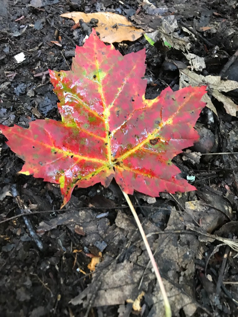 There – one ahead! Alas, it’s not a blaze, and we turn around and trudge back without the spring in our step that carried us up the hill. Back down the hill to the crossroads, to the Co-op. I pull out my map. Pat pulls up her trail app. The trail’s here – but where?