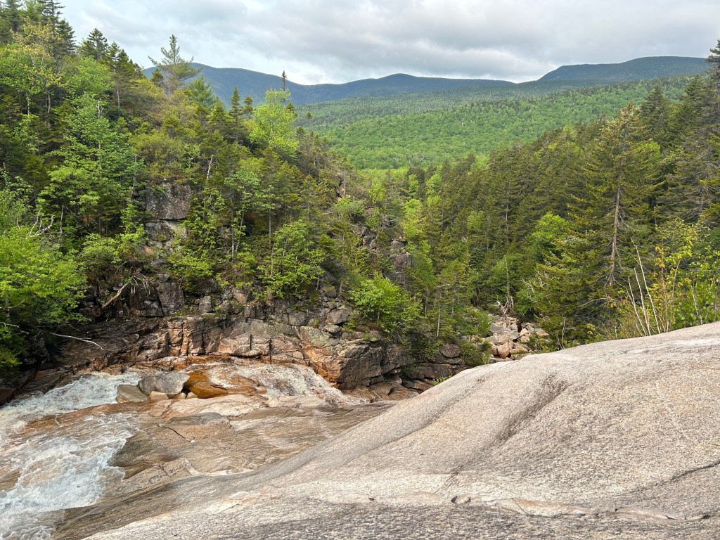 It’s pitch black when I wake to walk out to the bathroom. Pause on the porch to see the waning Strawberry Moon nestled in the Notch. Today we’ll head out the Ethan Pond Trail to Crawford Notch. It’s one of my neighbor Kris’ favorite trails which surprises me as he is one for super long and rigorous competitions in the mountains. A few weeks ago he ran up and down to Lonesome Lake some 20 times, 66 miles, to raise money for the food pantry. I delight in seeing a few stars this early morning. Clear skies bode well for a gift of a day.
