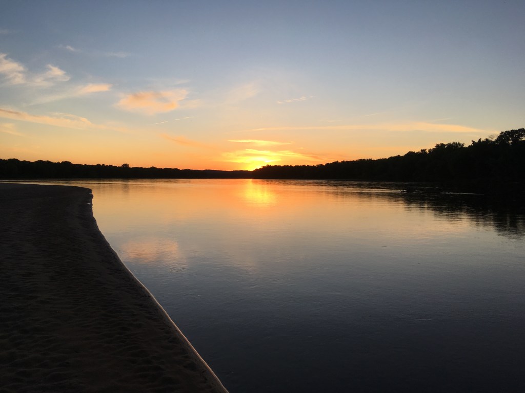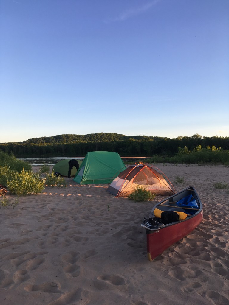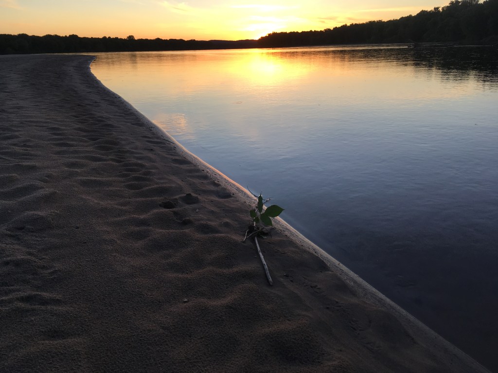 Mid-Afternoon, Somewhere along the Wisconsin River…. A hard few hours of paddling a relentless headwind, white capped waves. Finally, around the bend, at last a sandbar where we can camp tonight. The four of us sitting on sand in our camp chairs, a cold beer in hand, facing north, into the wind. Broken white turtle shells curled in the hot sand. Our tents lined in a row filled with air and tossing in the wind like great green and red balloons. There is nothing else to do, no where else to go, no better place to be.