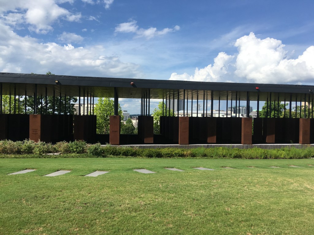 Afternoon, Peace and Justice Memorial, Montgomery, Alabama….. The green field in the courtyard, surrounded by great cylinders hanging from the roof of the open-air building, the names of African Americans inscribed on them who had been lynched. How many of these small towns, cities I have passed by – Lawrence, St. Louis, Little Rock, Memphis, Elaine…. How many of those like me who have stood in the field and watched, witnessed what has happened and done nothing or cheered the violence on? We hear that you can’t really move forward until you know and claim your history. What do I need to mark and remember here? What moves me to justice?